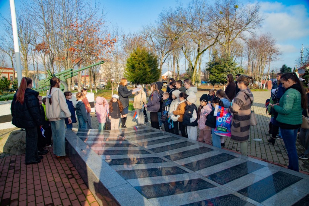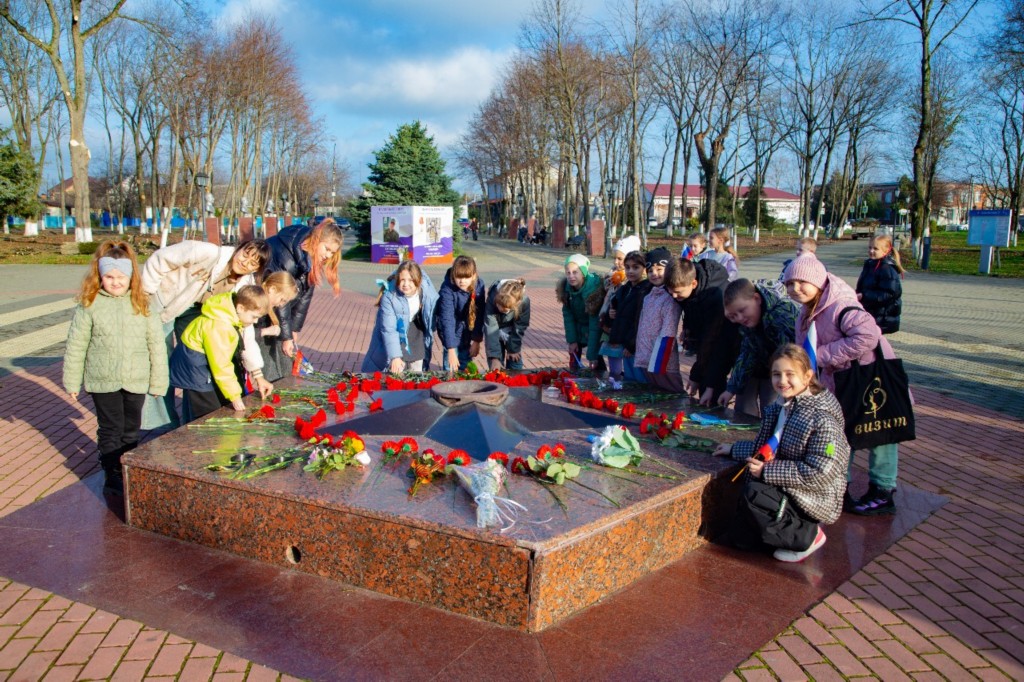В рамках знаменательных памятных дат для нашей страны – День неизвестного солдата и День героев Отечества, учащиеся объединений Центра творчества «Мир дизайна» (педагог Ольга Дужик), «Развивайка» (педагог Наталья Енина), «Калейдоскоп» (педагог Екатерина Жамбровская), «Поющие струны» (педагог Анна Вацко), «Мир в объективе» (педагог Александр Безъязычный) при организации белореченского городского Музея приняли участие в экскурсионном мероприятии «Монумент Славы. Цветы у обелиска». Это мероприятие стало частью важной миссии – сохранения исторической памяти.