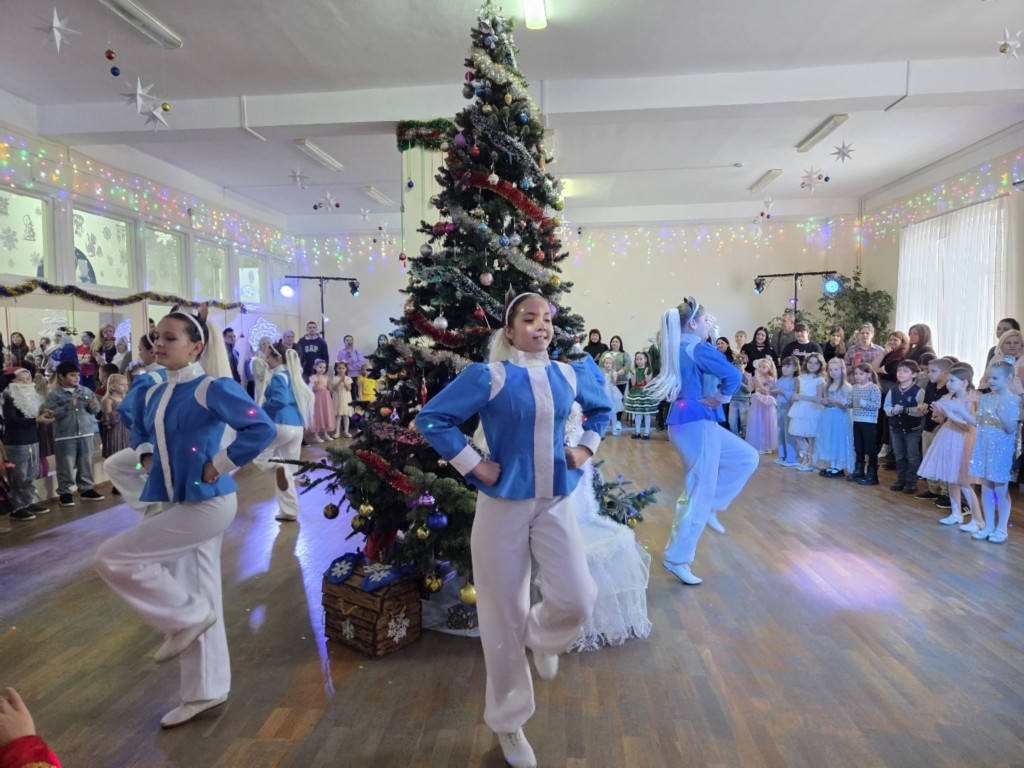 Юные танцоры хореографических коллективов «Сувенир» и «Золотые узоры» под руководством Галины Пересыпкиной и Светланы Малеванной, задорно и весело исполнили танцевальные композиции «белогривых лошадок» и «воздушных снежинок». Представление сопровождалось отличным, задорным настроением, смехом, улыбками и искренними детскими эмоциями.